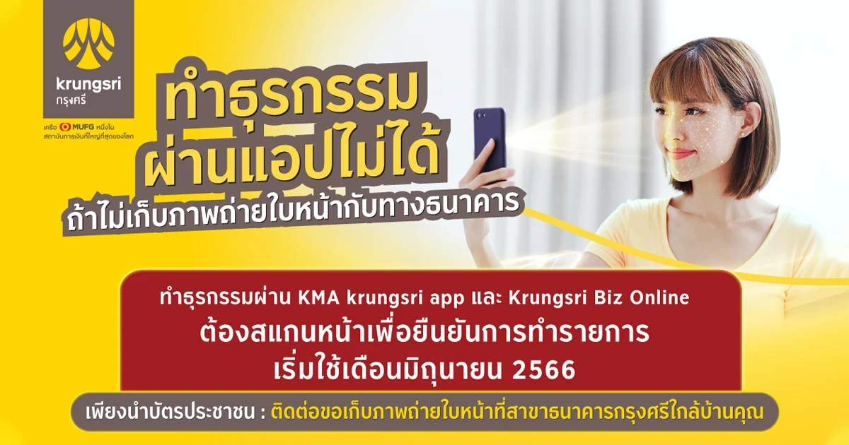 ธนาคารกรุงศรีอยุธยา จำกัด (มหาชน) ตอบรับนโยบายธนาคารแห่งประเทศไทย (ธปท.) ยกระดับความปลอดภัยในการทำธุรกรรมโอนเงินและปรับเพิ่มวงเงินผ่าน KMA krungsri app และ Krungsri Biz Online โดยลูกค้าผู้ใช้งานแอปต้องยืนยันตัวตนด้วยการสแกนใบหน้า ซึ่งแนวทางดังกล่าวจะเริ่มมีผลในเดือนมิถุนายน 2566 เป็นต้นไป โดยสำหรับ KMA krungsri app มีผลตั้งแต่วันที่ 27 มิถุนายน 2566 และสำหรับ Krungsri Biz Online มีผลตั้งแต่วันที่ 19 มิถุนายน 2566 (เฉพาะลูกค้าบุคคลแบบ Single Control เท่านั้น)