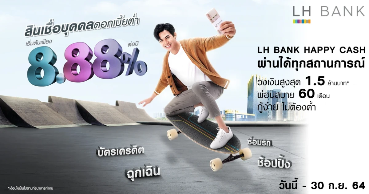 สินเชื่อบุคคลดอกเบี้ยต่ำ เริ่มต้นเพียง 8.88% ต่อปี LH BANK HAPPY CASH ผ่านได้ทุกสถานการณ์