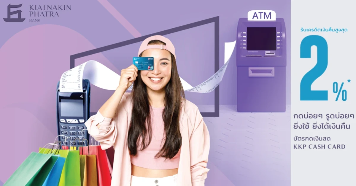 รับเครดิตเงินคืนสูงสุด 2% เพียงใช้งานผ่านบัตรกดเงินสด KKP Cash Card ตามเงื่อนไข ถึง 31 ต.ค. 64