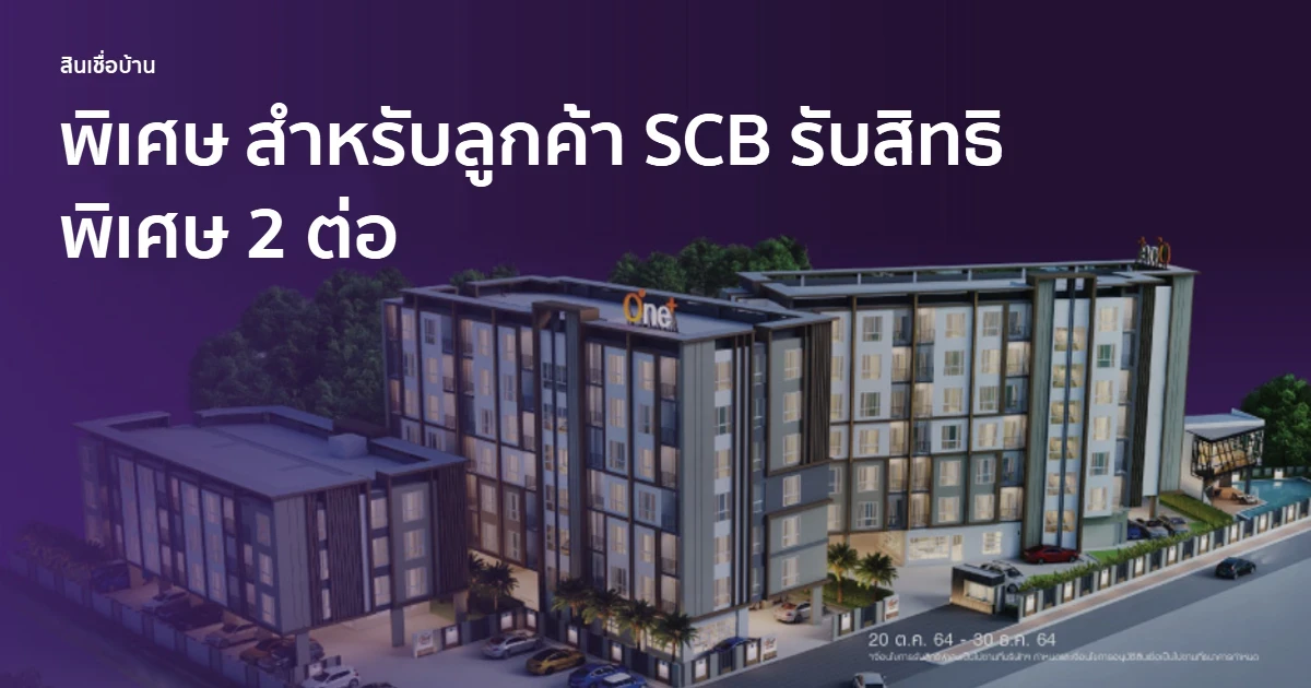 - ต่อที่ 1 รับส่วนลดสูงสุด 100,000 บาท* เมื่อจองและสมัครสินเชื่อบ้าน SCB