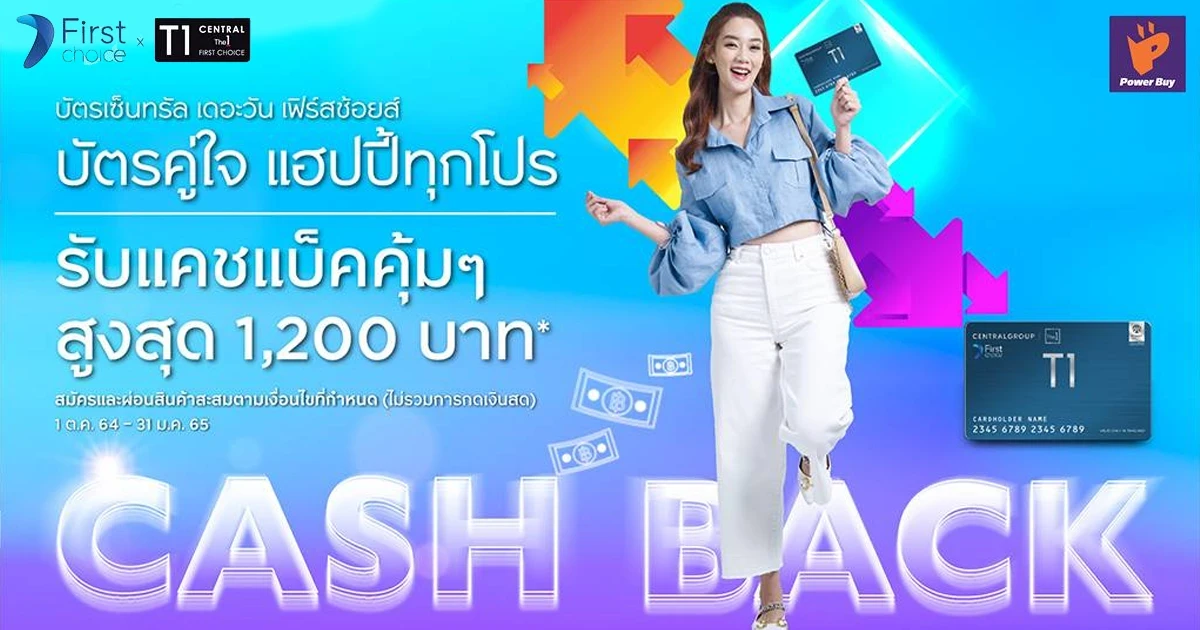 - สำหรับลูกค้าใหม่ที่สมัครบัตรเซ็นทรัล เดอะวัน เฟิร์สช้อยส์ เฉพาะบัตรหลักที่ได้รับอนุมัติ ตั้งแต่วันที่ 17 ธ.ค. 64 - 26 ธ.ค. 64 ในงาน Power Buy Expo เมื่อมียอดผ่อนชำระสินค้าสะสมที่ร้านค้าในเครือ เซ็นทรัล กรุ๊ป ที่ร่วมรายการ และ Power Buy Expo ภายใน 30 วัน นับจากวันอนุมัติ (ไม่รวมการกดเงินสด) รับเครดิตเงินคืน ตามเงื่อนไข