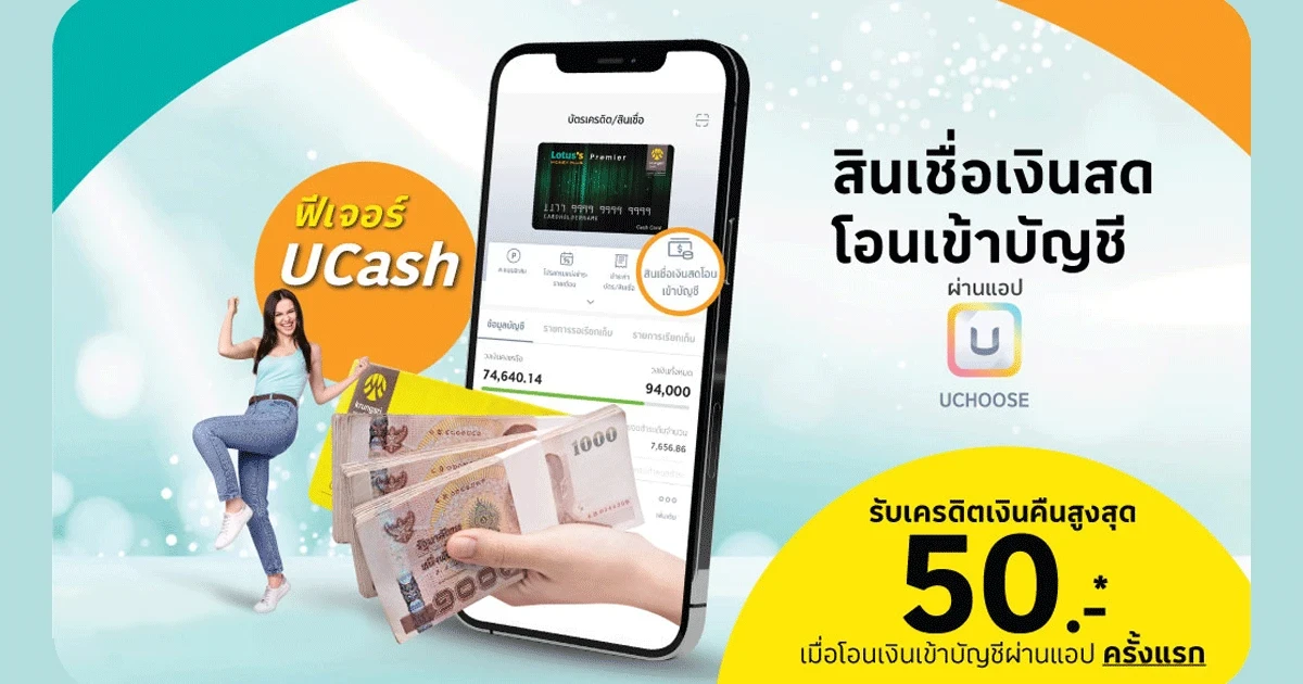 - สงวนสิทธิ์เฉพาะสมาชิกบัตรฯ ที่เบิกถอนเงินสดผ่านแอป UCHOOSE โดยใช้ฟีเจอร์สินเชื่อเงินสดโอนเข้าบัญชี (UCash) ครั้งแรกครั้งเดียวเท่านั้น