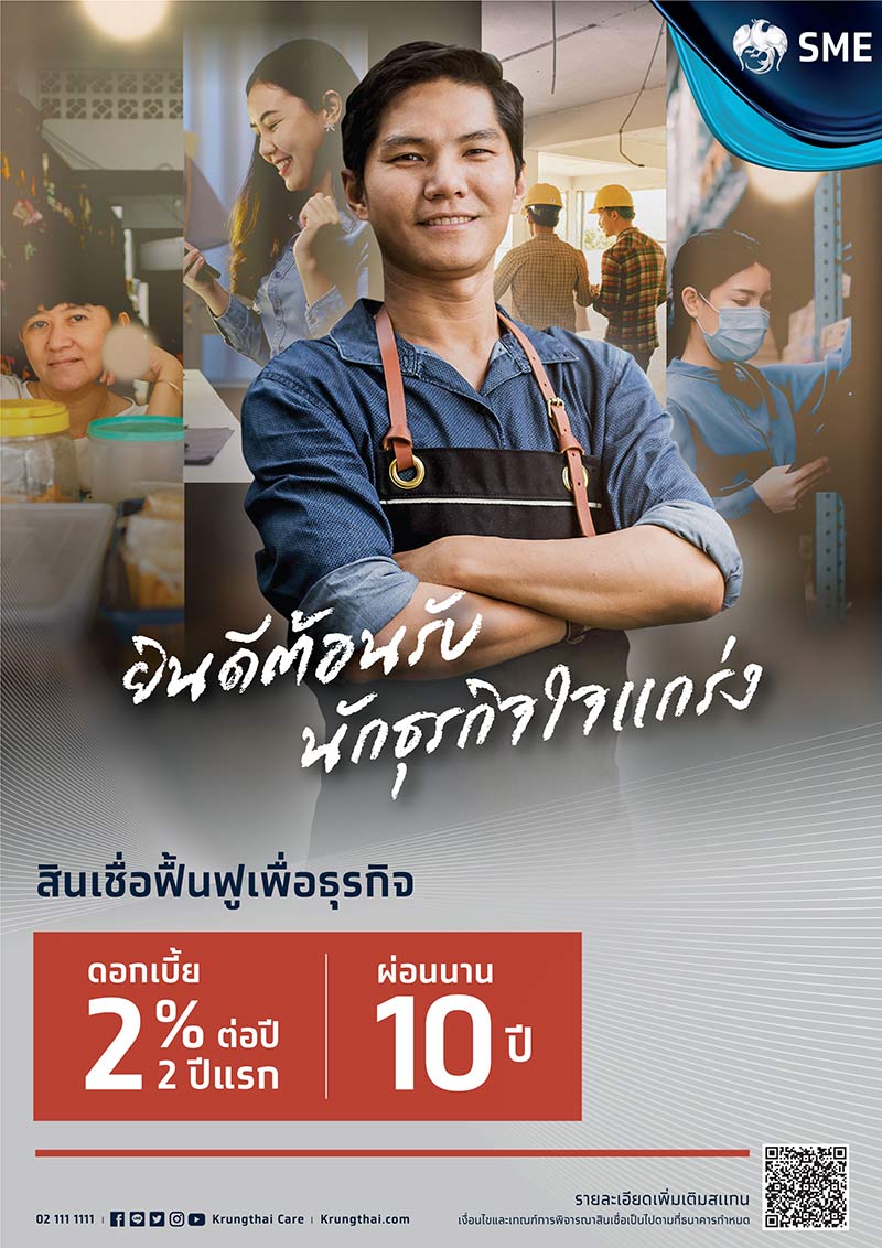 สินเชื่อฟื้นฟูเพื่อธุรกิจ : ดอกเบี้ย 2% ต่อปี (2 ปีแรก) ผ่อนนาน 10 ปี