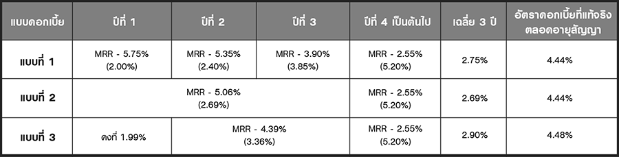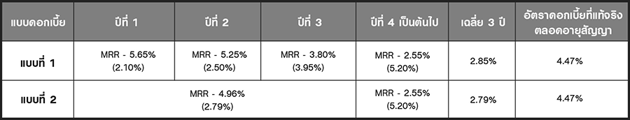 7. อัตราดอกเบี้ยที่แท้จริงข้างต้นเป็นเพียงตัวอย่างอัตราดอกเบี้ยสำหรับสินเชื่อที่อยู่อาศัยวงเงิน 3 ล้านบาท อายุสัญญา 10 ปี MRR = 7.75% (ณ วันที่ 19 ต.ค. 65) ที่คำนวณตามเงื่อนไขที่ใช้ในโฆษณาฉบับนี้เท่านั้น ซึ่งอาจมีความแตกต่างตามเงื่อนไขการกู้ยืมของลูกค้าแต่ละราย