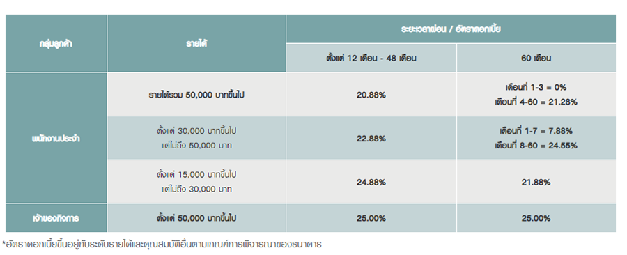 โปรโมชั่นสินเชื่อเงินสด