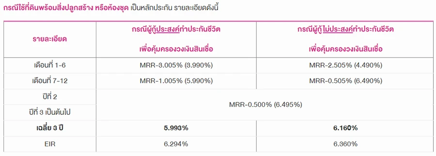 • อัตราดอกเบี้ย 6 เดือนแรก 3.99% (MRR-3.005%)