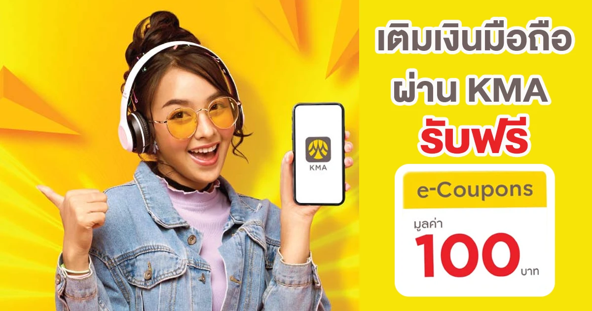 เติมเงินง่ายได้คืนด้วย รับฟรี e-Coupons 100 บาท เพียงเติมเงินผ่าน KMA – Krungsri Mobile App