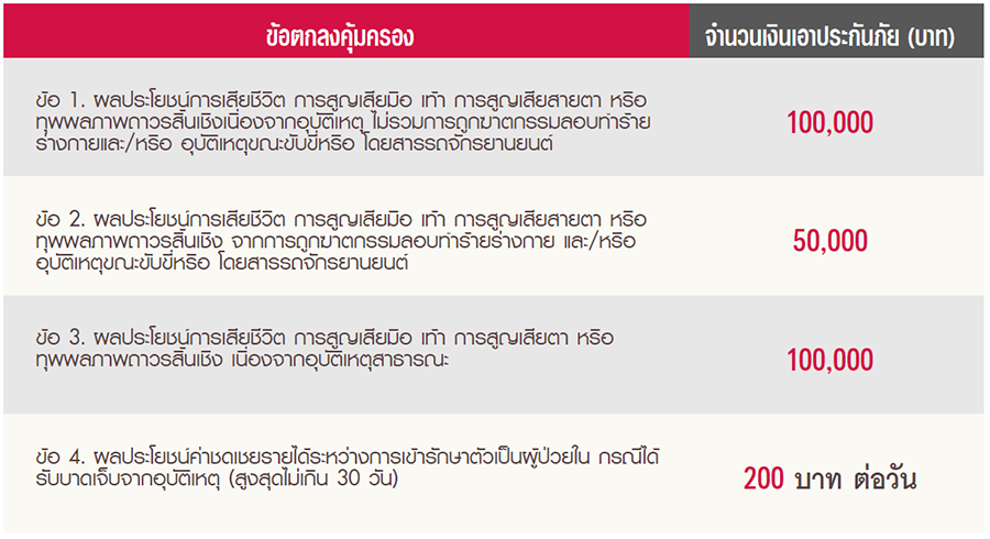 • วงเงินคุ้มครองสูงสุด 100,000 บาท