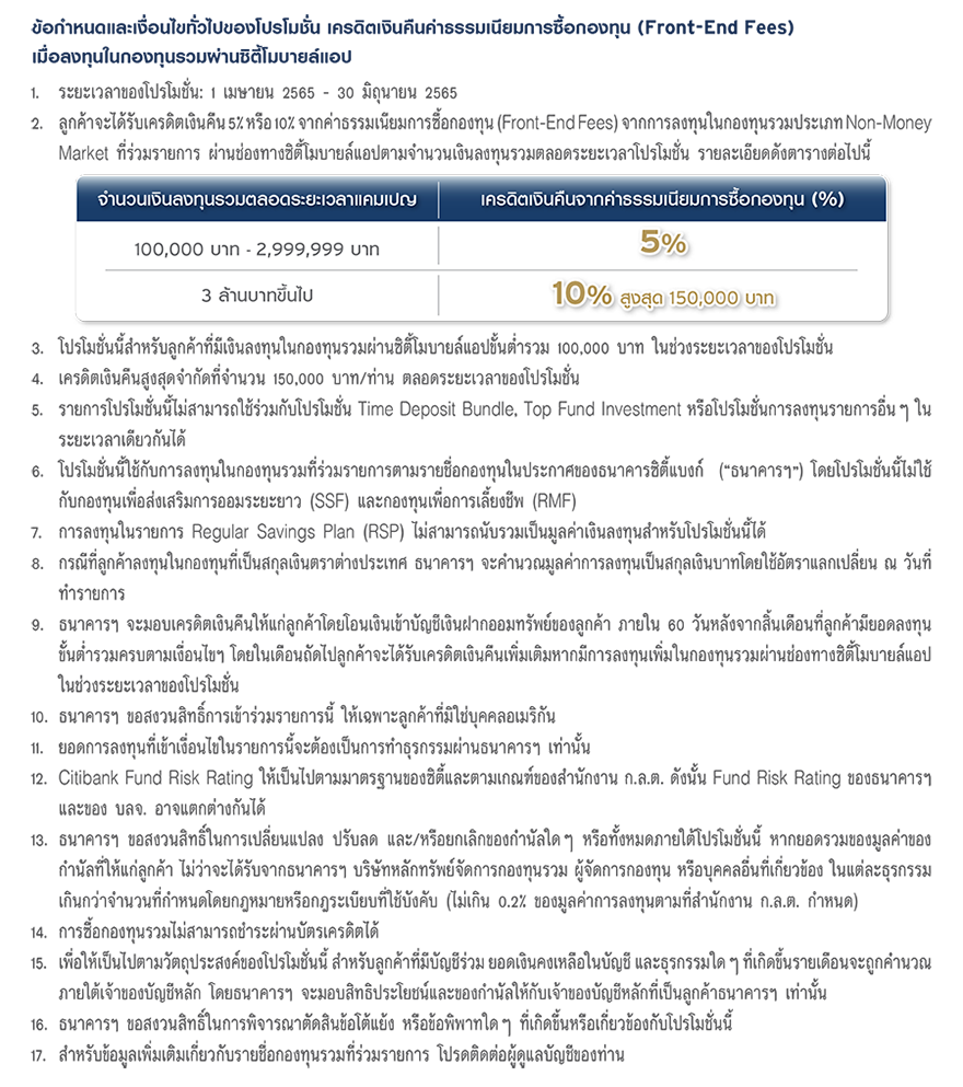 ลงทุนในกองทุนรวมผ่านซิตี้โมบายล์แอปวันนี้ รับเครดิตเงินคืนค่าธรรมเนียมการซื้อ สูงสุด 10% หรือ 150,000 บาท*