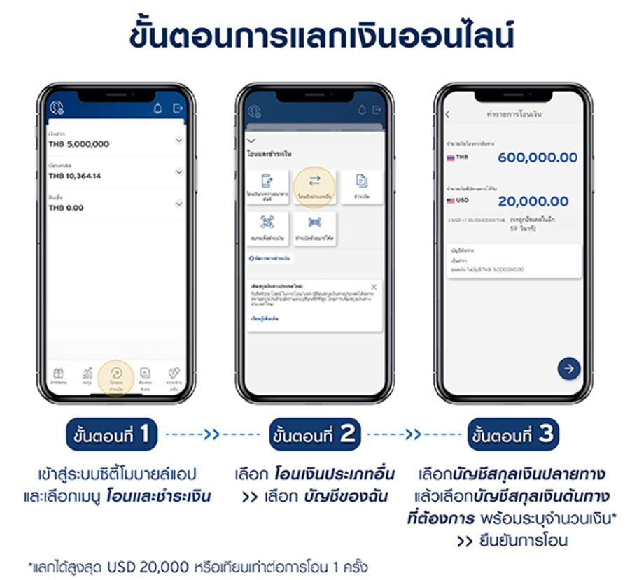 • เพียงมียอดแลกเงินผ่านช่องทางออนไลน์ (eFX) ในวันอังคาร 20,000 ดอลลาร์สหรัฐ หรือเทียบเท่าครั้งแรก