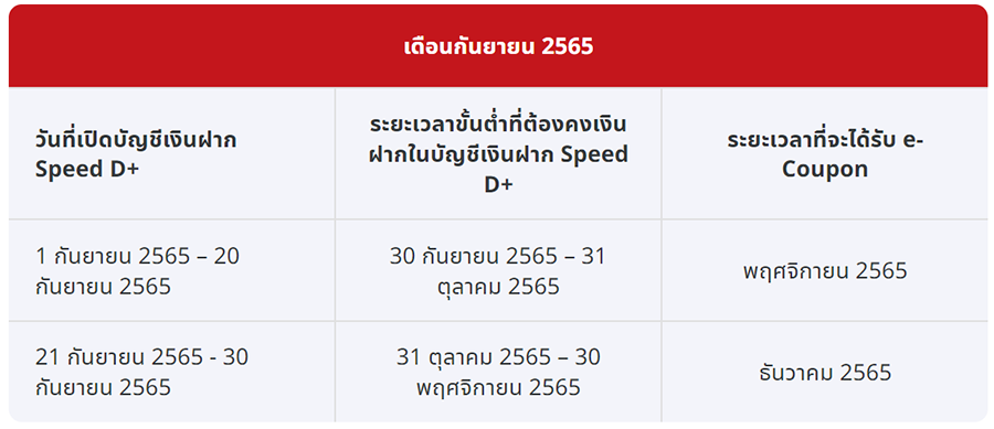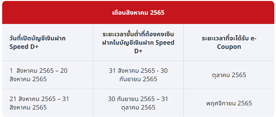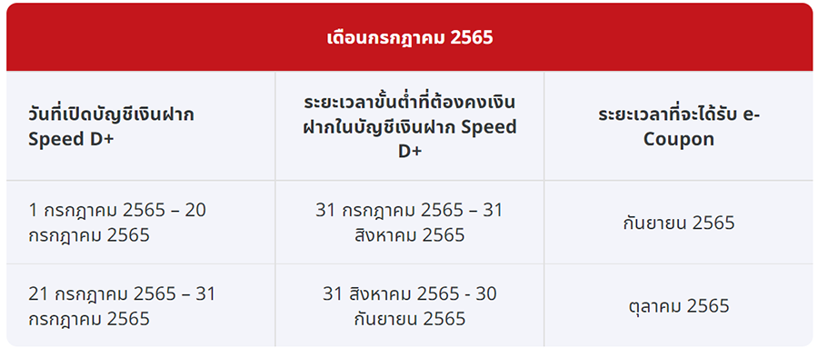 • ลูกค้าต้องไม่เคยมีบัญชีเงินฝาก Speed D+ มาก่อน จึงมีสิทธิ์เข้าร่วมรายการส่งเสริมการขายนี้