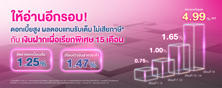 สอบถามข้อมูลเพิ่มเติม โทร. 1115 หรือ www.gsb.or.th