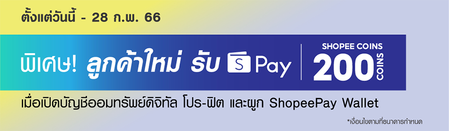 พิเศษสำหรับลูกค้าใหม่! เมื่อเปิดบัญชีออมทรัพย์ดิจิทัล Pro-Fit ครั้งแรก พร้อมผูกบัญชีกับ ShopeePay Wallet รับ 200 ช้อปปี้คอยน์ (Shopee Coins)