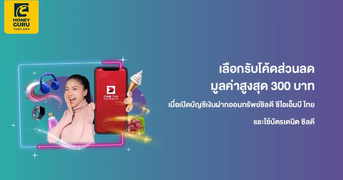 ต่อที่ 1 เลือกรับโค้ดส่วนลด Shopee, Swensen’s หรือ โค้ดส่วนลด Lotus’s มูลค่า 100 บาท เมื่อเปิดบัญชีเงินฝากออมทรัพย์ชิลดี ซีไอเอ็มบี ไทย มียอดเงินฝากครั้งแรกขั้นต่ำตั้งแต่ 1,000 บาท ขึ้นไป และโอนเงิน หรือ จ่ายบิล 3 รายการ ขึ้นไป