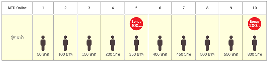 • รับโบนัสเพิ่มเมื่อแนะนำเพื่อนครบ 5 คน และ 10 คน รวมรับสูงสุด 800 บาทต่อเดือน
