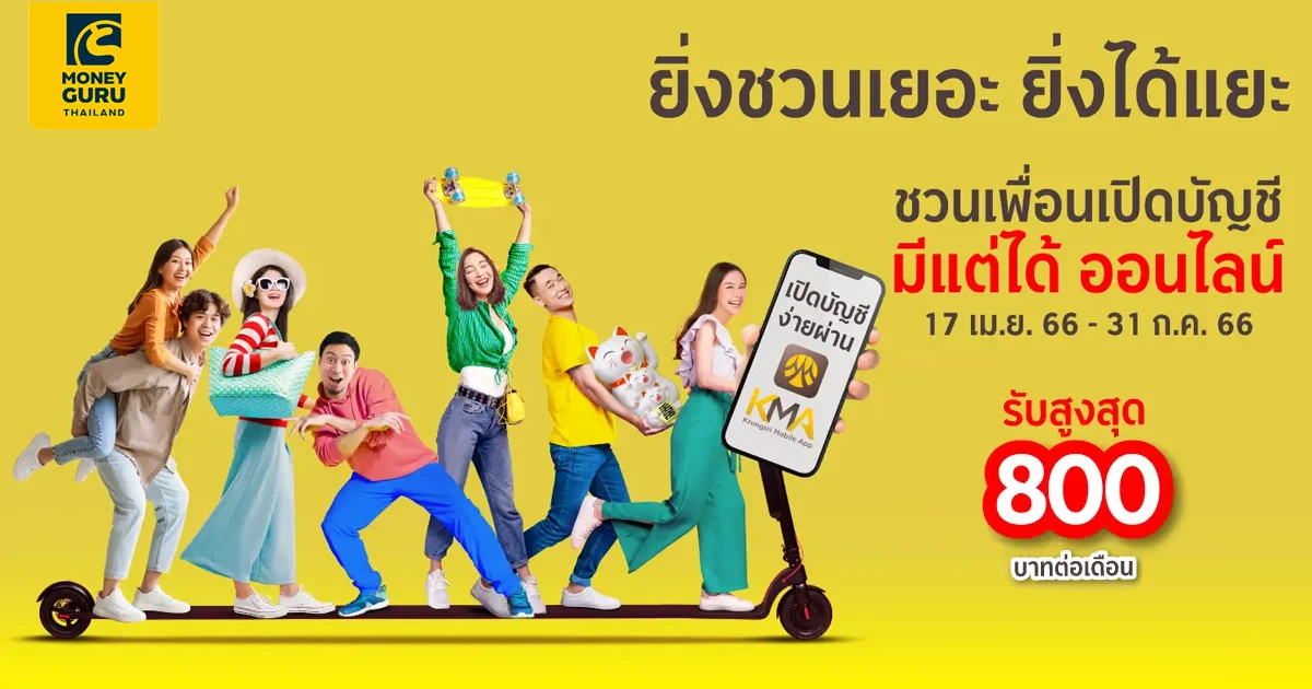ยิ่งชวนเยอะ ยิ่งได้แยะ ชวนเพื่อนเปิดบัญชี มีแต่ได้ ออนไลน์ รับสูงสุด 800 บาทต่อเดือน*