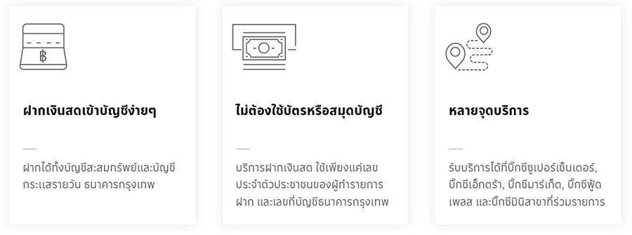 • ขั้นตอนการฝากเงินสด เข้าบัญชีธนาคารกรุงเทพ
