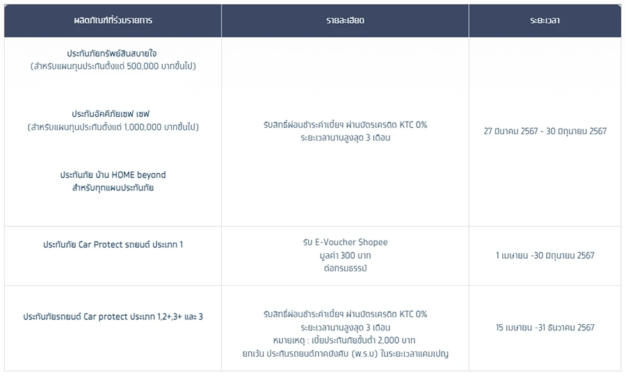 เมื่อซื้อประกันภัยทรัพย์สินสบายใจ , ประกันอัคคีภัยเซฟ เซฟ , ประกันภัยบ้าน Home Beyond , ประกันภัยรถยนต์ Car Protect ประเภท 1, 2+ ,3, 3+