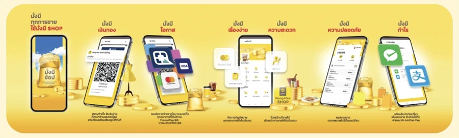 โซลูชั่นชุดมั่งมีเพื่อธุรกิจ ได้รวบรวมผลิตภัณฑ์ทางการเงิน และบริการที่ครบถ้วนและครอบคลุมที่จำเป็นสำหรับร้านค้าทั่วไป ร้านค้า Online เพื่อความสะดวกในการทำธุรกรรมให้ร้านค้ารับเงินสะดวก ลูกค้าจ่ายเงินง่าย ทำให้เกิดการตัดสินใจซื้อ และปิดการขายได้เร็วขึ้น
