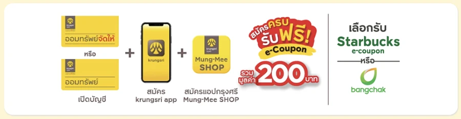 สำหรับลูกค้าทั่วไป : เลือก Combo Set ชุดสะดวกใช้ เพื่อเพิ่มความสะดวกในการใช้จ่ายประจำวัน สมัครครบ รับฟรี e-Coupon มูลค่า 200 บาท เลือกรับ Starbucks e-Coupon หรือ Bangchak e-Coupon