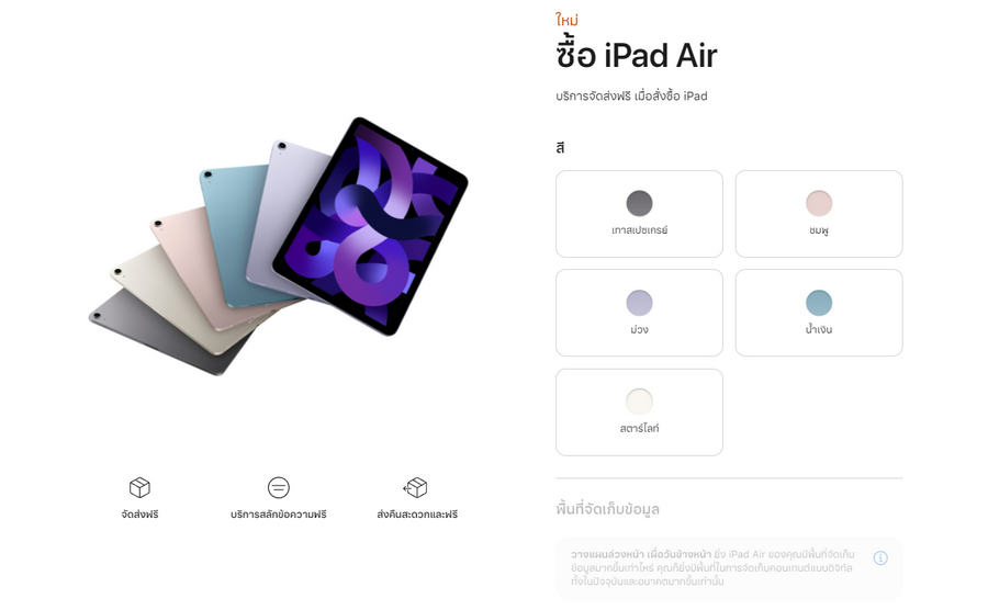- iPad Air 5 รุ่น WiFi ความจุ 256GB ราคา 25,900 บาท