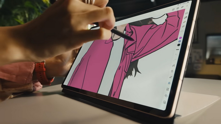 ทั้งนี้ สำหรับสายโปรดัคชัน เครื่องมือที่ตอบโจทย์คงไม่ใช่แค่หน้าจอที่ใหญ่อย่างเดียว แต่เครื่องที่มีทั้งความเร็วและแรงพร้อมรองรับการตัดต่อคอนเทนต์ต่างๆ ก็จำเป็นอย่างมาก ด้วย Galaxy Tab S8 Series ที่มาพร้อมกับชิปเซ็ต Snapdragon 8 Gen 1 ขนาด 4 นาโนเมตร เร็วแรงที่สุดในแท็บเล็ตของซัมซุง สามารถทำให้การตัดต่อวิดีโอเป็นเรื่องที่ง่ายดาย หรือแม้กระทั่งการถ่ายทำคอนเทนต์ผ่านแท็บเล็ต ด้วยกล้องหน้าคู่แบบมุมกว้างพิเศษ (Ultra-wide front camera) ความละเอียด 12 ล้านพิกเซล และคุณภาพวิดีโอระดับ 4K พร้อมฟีเจอร์การจัดเฟรมอัตโนมัติ (Auto Framing) ทำให้คุณสามารถสร้างสรรค์หนังฟอร์มยักษ์ ผ่านแท็บเล็ตที่แสนจะบางและเบาเครื่องนี้ได้เพียงเครื่องเดียว