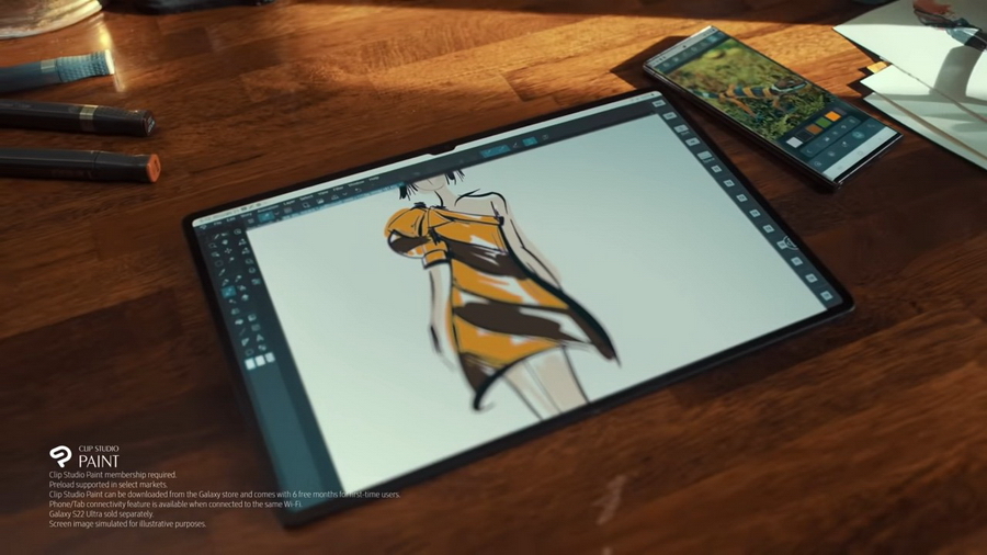 นอกจากนี้ สร้างสรรค์ผลงานยอดเยี่ยมขึ้นอีกขั้น ด้วยแอปพลิเคชัน Clip Studio Paint ที่สามารถเปลี่ยนสมาร์ทโฟนของซัมซุงเป็นจานสีดิจิทัล ใช้งานพร้อมกันกับ S Pen และ Galaxy Tab S8 Series ให้เป็นดั่งพู่กันที่มาพร้อมกับตัวเลือกมากมาย และผืนผ้าใบผ่านหน้าจอขนาดใหญ่ที่ใช้งานได้อย่างอิสระ และหากคุณต้องการออกแบบชิ้นงานให้แก่แบรนด์ที่มีสีสันเป็นเอกลักษณ์ คุณก็สามารถดึงสีผ่านภาพถ่ายที่อยู่ในแกลลอรี่ได้โดยตรง ร่างไอเดียที่ไม่เหมือนใครผ่านอุปกรณ์ที่ตอบโจทย์ต่อการใช้งาน