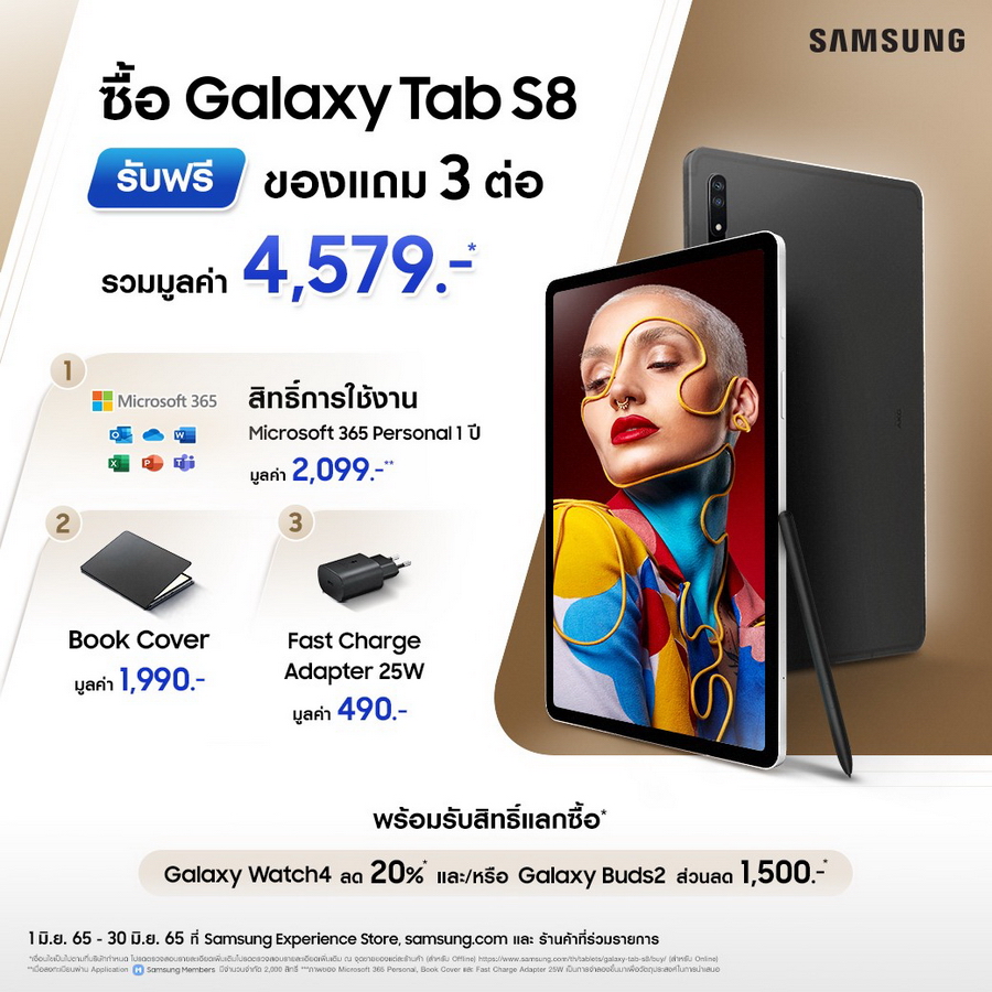 - รับฟรี Tab S8 Book Cover สีดำ มูลค่า 1,990 บาท